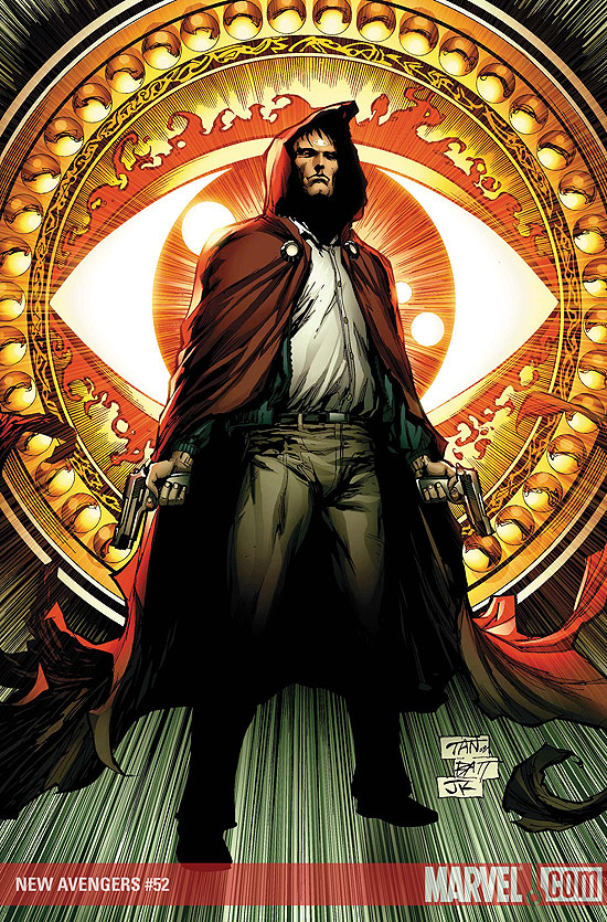Nous commençons donc par New Avengers #52, avec au scénario Bendis et au dessin Bachallo et Tan. Je voudrais déjà relever une chose assez étrange: dans le cliffhanger du mois dernier où l'on voyait le Doc Strange affalé sur le sol criant à l'aide alors qu'il est très bien portant dans celui-ci, je trouve ça malhonnête de la part de Bendis de nous faire croire que le doc va claqué (même si on sait qu'il va survivre) alors que dans le prochain épisode il est bien portant sans avoir ne serait-ce qu'une once d'explication. Passé ce coup de gueule revenons au contenu de l'épisode, le doc recherche le nouveau sorcier suprême après avoir été attaqué par Hood et ça tombe bein puisque les nouveaux vengeurs en veulent au vilain encapuché depuis qu'il les a piégés lors du double épisodes de New Avengers du mois de décembre. Un épisode qui se laisse lire sans être pour autant transcendant, les dessins de Bachallo sublimes et mention spéciale à Panini (décidément, ils ont le vent en poupe ce mois-ci) qui laisse filer le mot "pute" dans sa traduction, j'espère qu'il abandonneront définitivement leurs "@!#ù".